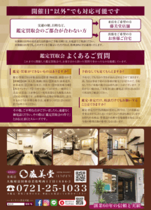 【富田林市民会館にて】第20回 鑑定買取会を実施いたします!9月28日(日)~9月29日(月)