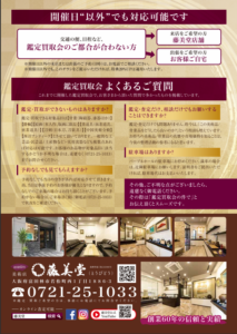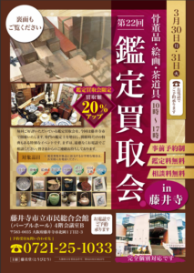 【藤井寺市立市民総合会館にて】第22回 鑑定買取会を実施いたします!3月30日(月)~3月31日(火)